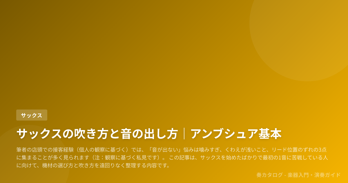 この記事は、サックスを始めたばかりで最初の1音に苦戦している人に向けて、機材の選び方と吹き方を遠回りなく整理する内容です。