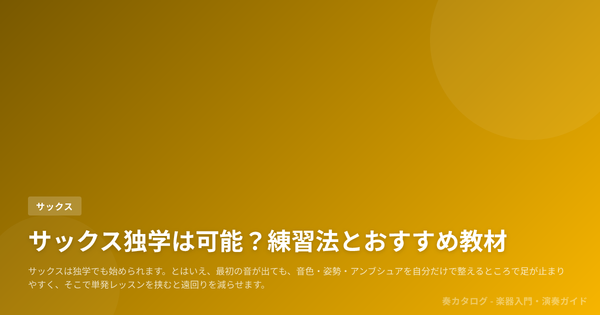 サックスはリードが振動して音を作る仕組みなので、最初の一音そのものは出せる人が多い一方で、音色、姿勢、アンブシュア(くわえ方と口の形)は自己判断だけだと崩れやすく、崩れたまま練習量だけ増えることが独学のいちばん厄介な点です。