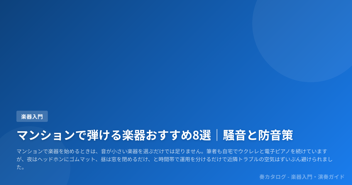 そこで本記事では、騒音レベルの目安から8楽器の比較、防音の考え方、費用相場までを通して、ヘッドホン運用・静音化・時間帯配慮まで含めて続けやすい候補を見極めます。
